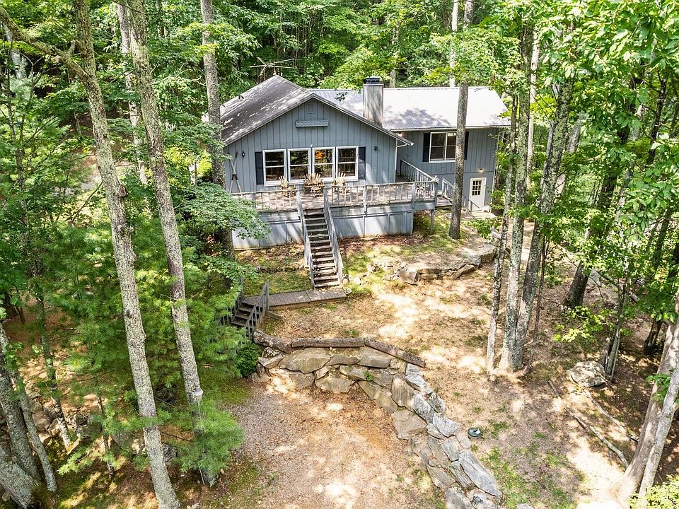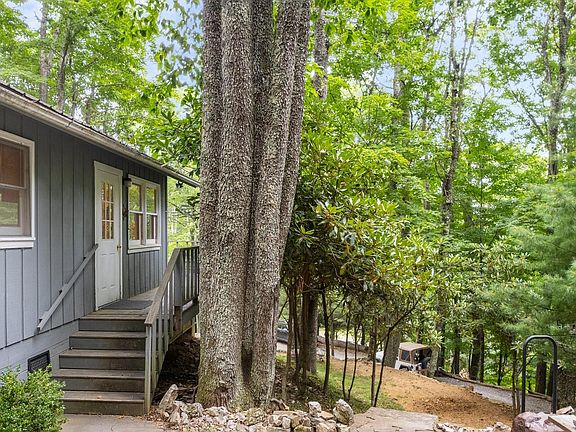 A high elevation mountain getaway awaits you in the Wolf Laurel Resort community! Nestled under a canopy of trees, this home offers fantastic views of the surrounding wildlife, inside and out, with wintertime mountain views. Take a seat on the wraparound deck and enjoy the cool summer temperatures while being lulled by the sound of a nearby stream. Landscape boulders create several terraced areas and a wide, winter accessible driveway. Move inside to find an open, single level floor plan with the primary bedroom separate from the 2nd bedroom and bonus room. This property includes a windowed workshop area with storage. The Wolf Laurel Resort offers golf, pickleball, tennis, swimming, live entertainment, dining, exclusive hiking trails and the Appalachina Trail and area ski resort currently being renovated. Enjoy all seasons in this active community. Village Club membership conveys buyer pays initiation and an optional membership to the Wolf Laurel Country Club is available for purchase.