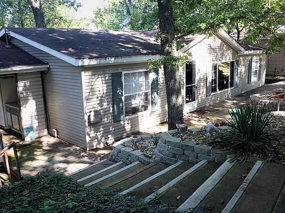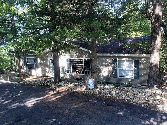 Super 3BR/2BA Home on .82 of an acre on a permanent foundation w/large covered deck is tucked in the trees w/a terrific view of Table Rock Lake, detached metal 2 car carport, detached 2 car garage/workshop w/lean-to for storage, asphalt circle driveway w/nice landscaping. House includes washer & dryer, all appliances & is furnished. Opened floor plan w/large living room , bar area w/bar stools, kitchen w/ample cabinets, dining area w/built in cabinets & nice laundry room. A 6 X 25 storage (studio) out back for storage or your crafts. House has been well cared for & Home Warranty is in place.
