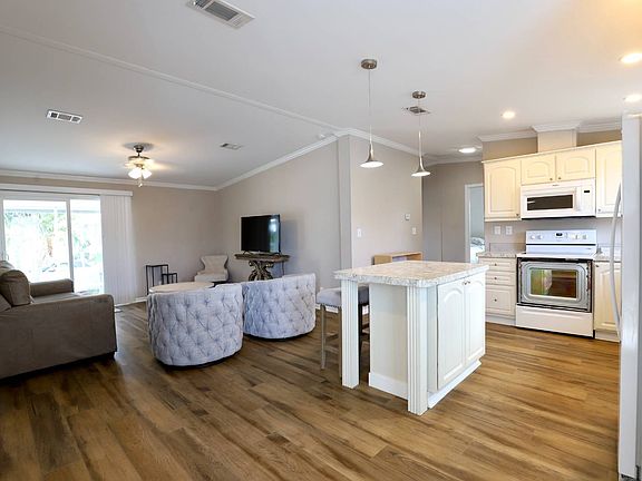 How would you like to live in Naples, Florida? This 2017 Palm Harbor home in Caribbean Naples is the perfect blend of comfort and coastal living-just 4 miles from the white sandy beaches! Located on a quiet cul-de-sac, this 2-bedroom, 2-bath open-concept home offers a bright and welcoming floor plan. The front screened-in porch is ideal for morning coffee or relaxing evenings, while the spacious kitchen island and ample cabinetry make cooking and entertaining a breeze. A convenient indoor washer and dryer are included. The generous master suite features a private en suite bathroom, providing your own peaceful retreat. Caribbean Naples is a vibrant community with wonderful amenities, including a sparkling pool and clubhouse, perfect for gathering with neighbors or enjoying the Florida sunshine. Lot rent is approximately $1,000 per month. Don't miss the opportunity to own this beauty so close to the beach! Call today to schedule your private showing.