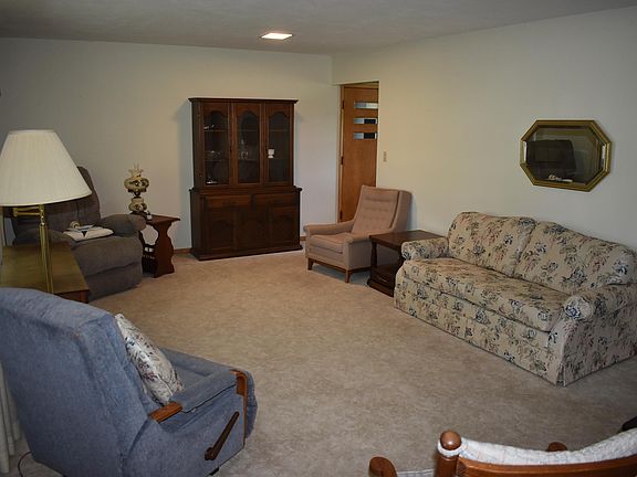 Ranch style home with attached garage that sets on an oversized lot. This well maintained home features a kitchen/ dining room, spacious living room, two main floor bedrooms, formal dining room or possible 3rd main floor bedroom and a basement family room.