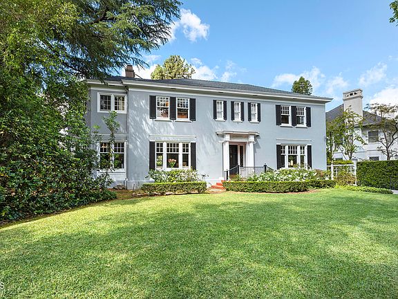 Designed by noted architects Marston & Van Pelt in 1917, this exquisite home is one of the finest examples of Colonial Revival Architecture in Pasadena. Set amongst large mature trees and wide sidewalks, this two story home boasts 5 bedrooms and 5 bathrooms with over 4,436 square feet of living space. Located in Prospect Park, considered one of the most highly desirable neighborhoods in Pasadena, and listed on The National Register of Historic Places. Fine features from the past such as gleaming hardwood floors, intricate crown moldings, abundant large windows, masterful built-ins and woodwork and a functional floor plan, distinguish this wonderful home. First floor features a grand entry, formal staircase, living room with fireplace, family room, library with built-ins currently used as an office, powder room, separate dining room, butler's pantry, light and bright kitchen with breakfast nook and the fifth bedroom with bathroom used as a cozy guest quarters. Upstairs are the primary suite with a sitting room and luxurious bathroom, two additional large bedrooms with their own updated bathrooms and one of the rooms with a spacious patio with retractable awning, overlooking the back yard with pool and stunning views of the hills. And lastly, a fourth bedroom with large windows with views of the shady trees and beyond. In addition, there is a finished basement with a workshop and a cozy den which can be used as a media room, home gym, hobby room or anything that your imagination desires. Outside is a shady patio & private ''woods'' for outdoor entertaining, sparkling pool and the 2-car double door garage with lots of extra storage space. This amazing property is situated on a treasured site close to the Arroyo, within walking distance to the Rose Bowl Stadium, Brookside Park, Gamble House, Fenyes Mansion, Norton Simon Museum, Wrigley Mansion, Old Town Pasadena and easy accesses to the major freeways, waiting for its new prized owners.