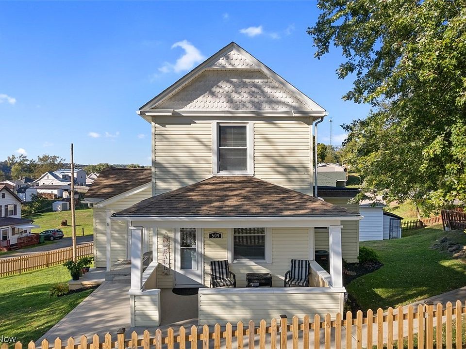 Welcome to this charming two-story home situated on a desirable corner lot! Enjoy your morning coffee or unwind in the evening on the inviting covered front porch. As you enter, you’re greeted by a comfortable living room that flows into the dining area, offering plenty of natural light and space for everyday living or entertaining. The kitchen sits conveniently to the left and comes fully equipped with a gas stove, microwave, dishwasher, and refrigerator - all included for your convenience. The first floor also offers a versatile bedroom or flex space, perfect for a guest room, home office, or playroom, along with a full bathroom for added accessibility. Upstairs you’ll find two additional bedrooms with ample closet space and cozy appeal. The full basement features laundry hookups, a second full bathroom, and walk-out access to a covered back porch—ideal for outdoor gatherings or peaceful relaxation. From there, step into the spacious two-car oversized garage, providing plenty of room for parking, storage, or a workshop setup. An additional shed offers even more storage options. Outside, you’ll love the combination of off-street parking and a partially fenced yard that provides both privacy and open space for pets, gardening, or recreation. With its practical layout, multiple full baths, and flexible living areas, this home offers comfort and versatility in a convenient location close to everyday amenities.