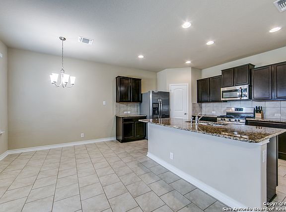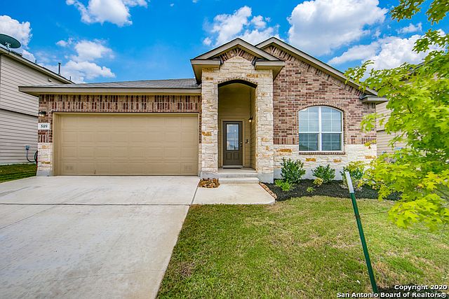 This single-story home was built in 2018 & is like new! Arched hallway transitions & high ceilings add architectural interest & enhance the open & spacious feeling. Gas cooking & Stainless Steel Appliances, including built-in microwave plus Granite counters at the island kitchen. The expansive private owner's retreat is split from the secondary bedrooms & features a massive walk-in closet. Separate garden tub & shower plus double vanity at en-suite bathroom. Large walk-in pantry + a huge laundry room. Thoughtful & attractive finishes such as recessed lighting at kitchen, art niche at great room & paneled interior doors. Covered back patio & plenty of green lawn for the kiddos or your favorite pup to play. Sprinkler system at front & back yards. Don't wait on this one -schedule your private showing today. WELCOME HOME!