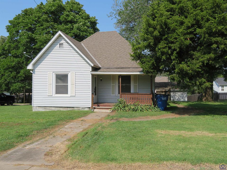 Adorable turn of the century bungalow with tons of charm and even more potential. Two bedroom, 1 1/2 bath, with third conforming bedroom currently being used as a laundry room that can easily be converted back to bedroom. Mechanical and additional laundry hook-up in partial basement. Generous sized living spaces with spectacular, original hardwood floors. Large eat-in kitchen with tons of cabinets and huge pantry for extra storage. Back deck, concrete patio, detached 1 car garage with workshop. Partial basement has inside and outside access perfect for storm shelter. Home is selling AS-IS. Buyer welcome to inspections.
