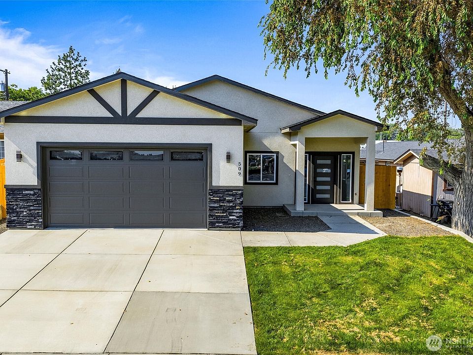 Stunning new construction built in 2024! This 3 bedroom, 2 bathroom home offers 1,499 sq ft of modern living space with an open floor plan and stylish finishes throughout. The kitchen features sleek white cabinetry, quartz countertops, a center island with contrasting dark tones, stainless steel appliances, and pendant lighting that makes it a true centerpiece of the home. Bathrooms are designed with tile flooring and contemporary finishes for a fresh, clean look. Enjoy durable laminate flooring throughout the main living areas and the comfort of a fully fenced yard, perfect for both privacy and entertaining. Move-in ready with all the benefits of brand-new construction, this home blend's function and style in every detail.