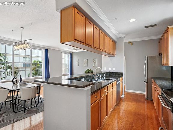 One or more photo(s) has been virtually staged. Welcome to your new home in the heart of South Tampa! Tucked away on a quiet street, this Spanish-style townhome offers the best of both worlds—just minutes from Hyde Park, Midtown, downtown, MacDill AFB, and the airport, yet nestled in a private 8-home community with lush landscaping and a low $200/month HOA. Step inside and you’ll find rich hardwood floors, arched doorways, crown molding, and big windows that fill the home with natural light. The kitchen is a true standout with granite countertops, stainless steel appliances, extended cabinetry, and a breakfast bar that opens to the dining and family room—perfect for everyday living or gathering with friends. Upstairs, on the third level, you’ll discover two generously sized bedrooms, each with its own bathroom. The primary suite feels airy with 9-foot ceilings, two walk-in closets, a walk-in shower, and double sinks with granite counters. The second bedroom also has a full bath with granite counters and a tub/shower. For added convenience, the laundry room (complete with sink and shelving) is located on the first floor, and there’s even a private patio off the back door. This home also features a full-size two-car garage and comes complete with all appliances. With thoughtful upgrades, natural charm, and a central location that makes commuting a breeze, this move-in ready home is a rare find in South Tampa. Don’t wait—this one is priced to sell!