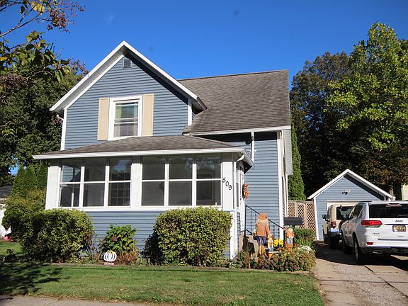 Charming traditional home in the heart of Vicksburg! 2-story entry with open staircase & chandelier greet your guests. Spacious living room has built-ins and arched doorways. Large formal dining room and spacious kitchen includes appliances. Den features corner gas log fireplace with brick surround. Upstairs are 3 nice sized bedrooms with ceiling fans. Primary suite has taller custom wood ceiling and 1/2 bath. You'll love the huge privacy fenced back yard featuring a raised deck with pergola for entertaining. Basement is great for storage, has a separate hobby room and laundry area. Per sellers, roof, siding, furnace and water heater are 10-12 years old. 1 car detached garage and concrete driveway. Enjoy everything the Village of Vicksburg has to offer within walking distance today!