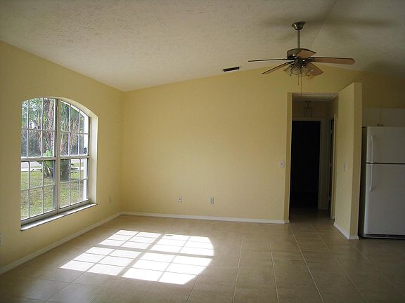 Cozy home with new tile in living area's and master, carpet in guest bedrooms. Bathrooms have been updated, new appliances, kitchen sink, faucet and range hood. CBS construction, and storm shutters. Screened porch with fenced yard backing a drainage easement. Well and pump on property for future irrigation. Many fruit trees including 3 mango trees, avocado, naseberry and ackee. Garage has sliding screens.