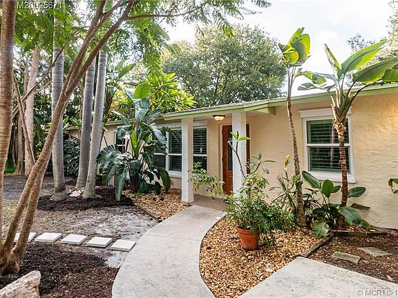 Great location on a quiet street within short walking or biking distance to grocery, shopping, restaurants, medical facilities, Shepherd Park and Historic Downtown Stuart! This updated 3 BR/2 BA CBS home features hurricane impact glass windows, plantation shutters and a large, pocketing sliding glass door that opens up to screen enclosed lanai and private fenced in backyard with mature, lush landscaping, custom deck and 2 storage sheds. No HOA. Top rated school district. No flood insurance required! City/Public water and sewer. Nearby million dollar+ waterfront properties. Home has been pressure washed, freshly painted, air conditioner has been serviced and sanitized, landscaping has been professionally trimmed. New flooring in bedrooms. Roof has been inspected by two roofing companies; estimated life expectancy 5-10 years. Sellers have also obtained written quotes for shingle and metal replacement.