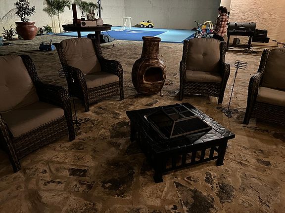 Open concept. 3 be with big master 2 full indoor bath Patio has 1 restroom 1 close studio room for office use another room to be used as a media or toy room. Backyard features a patio with limestone / tv outside restroom and customized basketball court. It has 2 entrances for east access. **Corner lot** 10,000 sf lot.. plenty of parking 2 car garage Owner pays HOA and insurance Renter pays all bills Damage to property must be paid by renter. Must maintain landscaping/grass. First month rent deposit Pet must include vaccination paperwork plus $300 non refundable deposit ** Move in ready November-December **