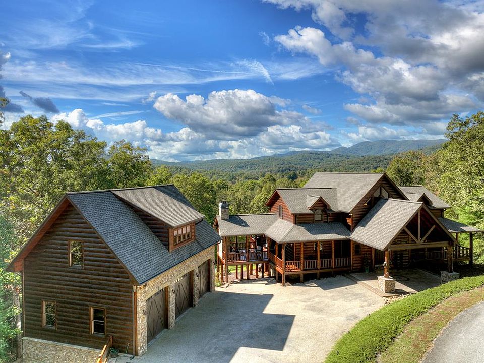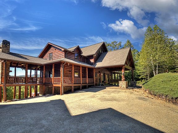 HOMESTEAD MOUNTAIN RETREAT located very convenient to both Blue Ridge and Ellijay in one of the most prestigious developments in North Georgia - Homestead Mountain! Homestead Mountain is a gated subdivision with all paved road, underground utilities, and common area pond. This exquisite mountain retreat showcases 5 spacious bedrooms with a large open loft space in the main house, gourmet kitchen with stainless steel appliances, large kitchen island with seating, dining area spacious enough for 10-12 seating, open great room with floor-to-ceiling stacked stone fireplace and wall of windows framing the long-range year-round mountain view, primary suite on main level with walk-in closet and laundry room, upstairs offers 2 guest bedroom suites and large loft area, finished terrace level with wet bar, additional recreation area and guest bedrooms/baths, main level wrap around deck and party deck with outdoor fireplace. Detached 3-gar oversized garage offers finished space above with flex space perfect for additional bedroom or office space and full bathroom, outdoor fire fit and hottub deck, level driveway with porte-cochere and ample parking space making this the perfect mountain retreat!
