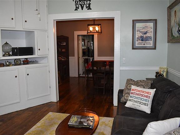 Charming 3 bedroom 2 bath near downtown Natchitoches Historic District yet on dead end street. This home is full of character and is within a mile of East Natchitoches schools, hospital and shopping. Features include living room, dining room, kitchen open to den. Front bedroom could also be an office, exercise room, or playroom. Den has electric fireplace and view of amazing back yard with giant live oaks. These oak trees are post card beautiful and shade a huge back yard for the kids and dogs. Kitchen has cabinets to the ceiling, plenty of counter space, peninsula with bar stools, and includes stainless gas stove, dishwasher and refrigerator. Hall bath features huge soaker tub and washer/dryer hookups. Main bedroom has full on-suite bath with tiled shower and back yard view. Wood pine floors in living and dining. Two car detached garage, privacy fence, workshop, rear patio. Central air/heat. Ap 3/4 acre oasis in the middle of town. Great home at a great price. Call for appointment