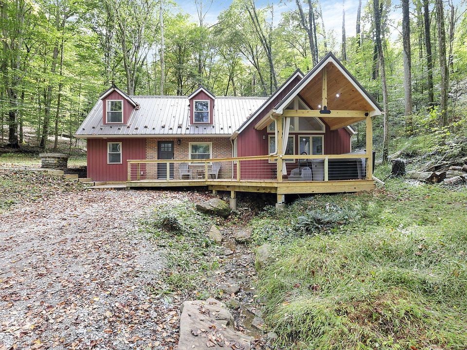 Rustic ''Glamping'' type getaway. This property is located on a private road off of Tarkiln. One room downstairs with kitchenette, eat in space and living room with fireplace.
