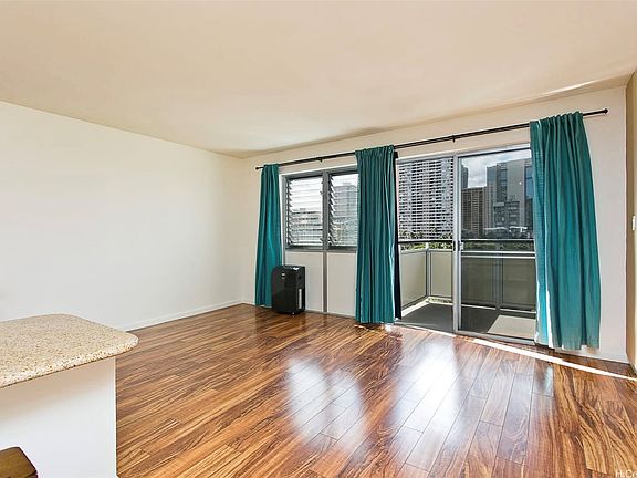Coveted 2 bedroom, 1 bathroom condo located in Ala Wai Cove. The unit features a open concept living, dining, and kitchen with unobstructed views of Diamond Head on the left and the Ala Wai Canal, the Ala Wai Golf Course, and the Ala Wai Park from the 93 sqft lanai. The kitchen features wood cabinets, granite countertops and koa laminate flooring in the living room and bedrooms. Centrally located to shopping, restaurants, and entertainment. Pet friendly and 1 assigned covered parking.