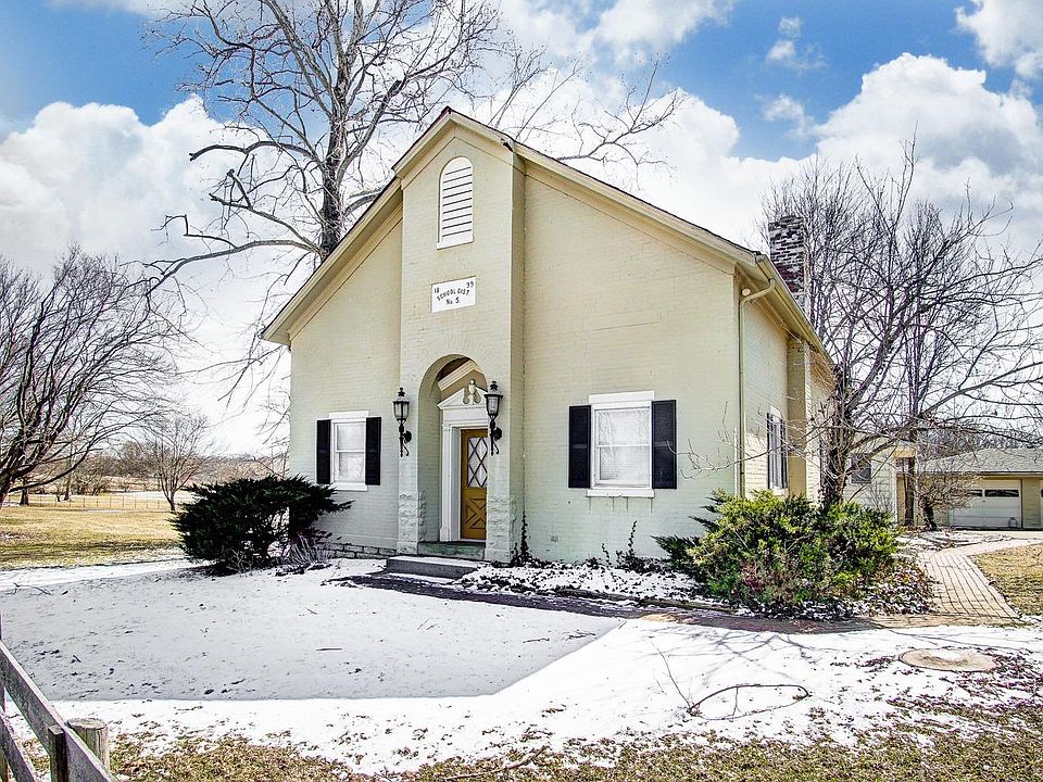 Enjoy Country Life with only minutes to everything! Charming 1890's Remodeled Schoolhouse. Unique in every way! 7.29 Acres of beauty! Home is approx 2000 square feet of living space. Cozy Family room with Pellet stove and view of the pond. There is 2 Barns, one with 4 stalls and with Loft, the Large Barn has 5 stalls and indoor riding arena.