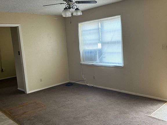 This HOME boasts a SPLIT FLOOR PLAN, with the bedrooms on either side of the home. Features include window units in all rooms, and wall heater for the main bedroom and living area. UTILITY ROOM with washer/dryer hookups leads you to the LARGE BACK YARD for your outdoor activities. There is a PRE-EXISTING CONCRETE SLAB in the backyard to build a shed on or possibly turn into a driveway. The Buyer/Buyer's agent is to verify all measurements.