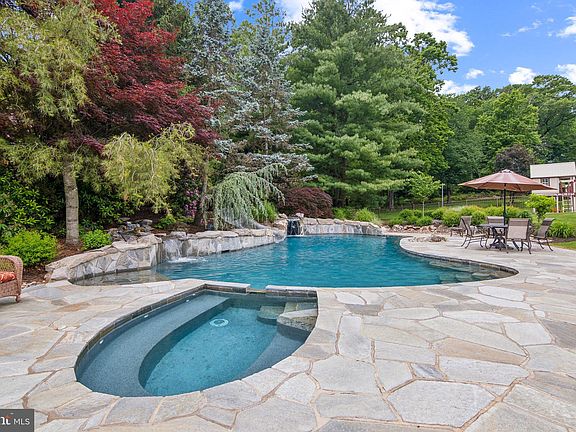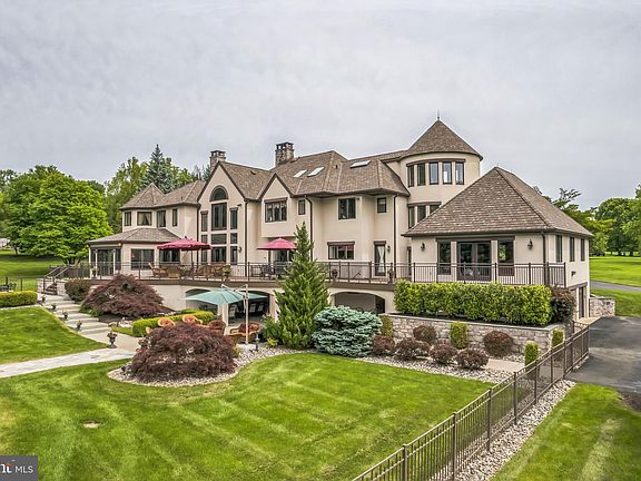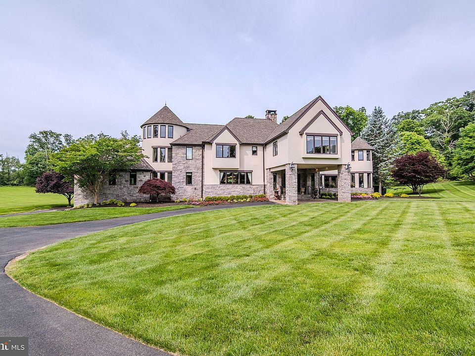 Welcome to 509 Wheatfield Lane, a truly extraordinary estate tucked away on 3.32 picturesque acres in the prestigious Timber Ridge community of Upper Makefield Township. Located at the end of a quiet cul-de-sac in the award-winning Council Rock School District, this impressive home blends architectural elegance, modern luxury, and resort-style amenities. A sweeping circular Governor’s driveway leads to a stately covered stone portico, setting the tone for what awaits inside. Enter the grand two-story foyer, where limestone flooring, a floating staircase, and intricate millwork make a striking first impression. To the right, the formal living room features hardwood floors, a two-sided stone gas fireplace, and a rounded alcove—ideal for a piano or seating area. Across the foyer, the banquet-sized dining room showcases extensive moldings, hardwood flooring, and a dramatic chandelier, perfect for hosting gatherings. The recently remodeled kitchen is a chef’s dream, designed for both beauty and function. Custom cabinetry with smart storage, a two-level center island, built-in espresso station, Wolf double ovens, upgraded cooktop, two cabinet-fronted Miele dishwashers, and two Sub-Zero refrigerator/freezers are complemented by limestone flooring, which extends into the dining area. An informal dining area with built-ins opens to a newly remodeled deck. Nearby, the well-appointed main floor laundry room includes a laundry chute from upstairs. The dramatic two-story family room features a soaring stone fireplace and a wall of windows that fill the space with light. Adjacent, the game/billiards room offers a second stone fireplace and curved alcove for cards or conversation. A spa room with built-in high-end spa adds a relaxing escape. The main level also features a conservatory with vaulted ceilings and access to the deck—ideal as-is, or easily converted into a first-floor bedroom suite or in-law suite. A beautifully updated powder room completes this level. Upstairs, the primary suite is a luxurious retreat with a serene sitting area in a turret, private office/sitting room, expansive walk-in closets, and a spa-like bathroom with jetted tub set in a dramatic alcove. Three additional bedrooms each have walk-in closets; two share a Jack and Jill bath, and one enjoys a private ensuite. Also on this level is a large multipurpose room, considered the fifth bedroom, currently used as an exercise room, and offering rough-in plumbing for a full bathroom. A private third-floor suite includes a spacious bedroom with sitting area, full bath, walk-in closet, and attic access—perfect for guests, in-laws, or an au pair. The finished lower level is built for entertaining, with a custom home theater (seating included), a second game room, full bath, sauna, and walk-out to the backyard. There’s also ample unfinished storage space in basement area. Step outside to your private resort: a heated in-ground pool with a winding rock "creek," thrilling water slide, and hidden cave. A separate spa area, multiple patios, and a covered outdoor lounge complete this outdoor oasis. Every inch of this remarkable property reflects luxury, quality, and thoughtful design. If you've been searching for an Upper Makefield estate offering privacy, prestige, and unparalleled lifestyle amenities—this is the one.