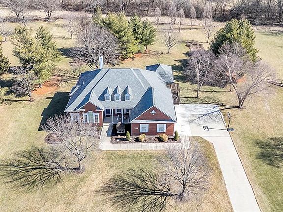 Stately, Stunning, and oh so beautiful! From the second you walk up to this Traditional style home you will notice the exquisite craftsmanship and attention to detail. Enter the front door to the semi open floor plan with office on the left and beautiful music room or formal dining to the right. Continue on to the open and spacious kitchen with white cabinets, center island with cook top and beautiful quartz countertop throughout. Plenty of room for storage in the walk in pantry makes this kitchen a chef's dream. The sun room was added in 2010 and has its own separate heating and cooling system. This will be your favorite place to relax and unwind in the home. Primary bedroom on the main floor leads to spacious bathroom and large walk in closet. Main level has formal dining room or music room and across from it is the stunning home office with built in shelving. Lower level has large family room with full size refrigerator, dishwasher and sink with bar area. Three additional large bedrooms on lower level and 2 full baths. Needing storage? This home has a suspended garage area with over 700 sq ft for storage. Additional room is perfect for workout area and gym. If you are woodworker or gardener there is an attached shop in the back of house will be perfect for you hobby. The backyard is an oasis with 1.4 acres of serenity. Flower beds of perennials will be in full bloom throughout the summer and enough green space for the kids to go camping.This meticulously cared-for home combines peaceful country living with proximity to city amenities like shopping, dining, and easy highway access. The entire home including garage and all storage rooms makes this home 5,987 sq feet of perfection. Don’t miss the opportunity to make this dream home yours! There is a small annual fee to maintain the common areas.