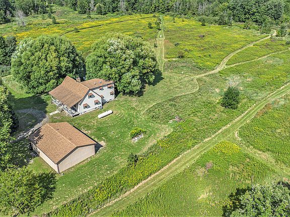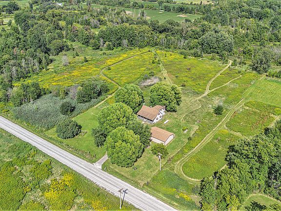 Discover the incredible potential of this property, offering breathtaking views and a wealth of features. With 10 acres, 3 bedrooms, 2 baths, a basement, and 40x30 pole barn garage, this property has it all. Imagine watching a stunning sunset over Petz Lake from your covered front porch, or the panoramic view from the side covered porch which once also had a pond. Enjoy the trails to Mudcat Drain running through the rear of the property or pick apples from the Honeycrisp and Gala trees. Main level boasts a large living room with cathedral ceiling and fireplace with blower, large kitchen and first-floor laundry add convenience to everyday living. This an estate sale sold as-is, offering an opportunity to customize and create your dream home. Information estimated buyer to verify all info.