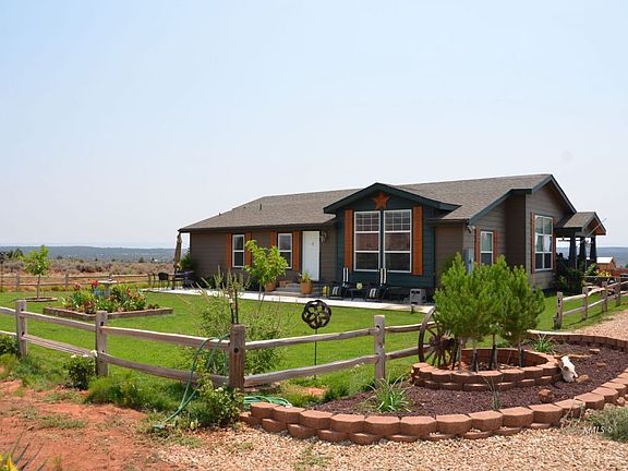 Very attractive and stylish 2000 sf home on 2.27 acres. Exterior features such as shutters and trim around the doors and windows make this home appealing to the eye. Views from the north are beautiful red cliffs, views to the south are miles of ranch land where often cattle can be seen grazing. This home has both a family room, spacious living room and dining room. The kitchen has room for a table and chairs & more cabinet space than most homes! Upgraded to gas range. There is a covered porch which leads into the family room/kitchen. Master bedroom can easily hold your king size bed with space left over. Garden tub and separate shower plus a full second bathroom between the two additional bedrooms. Vaulted ceilings and large windows throughout. New kitchen floor coverings and many upgrades. Bring your horses and other animals to reside in this peaceful property less than 10 minutes from Kanab.