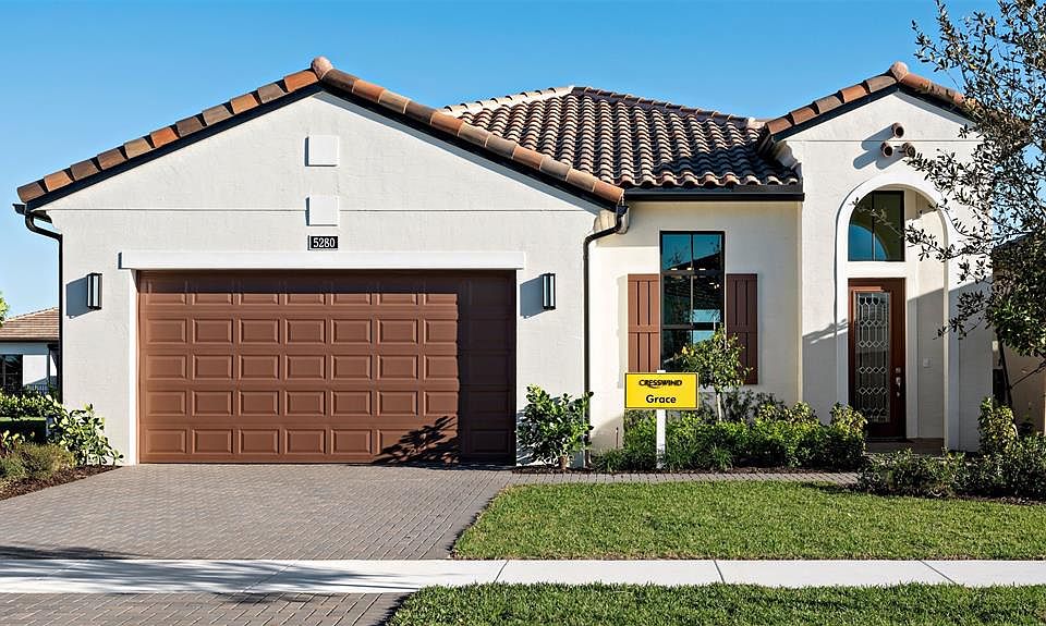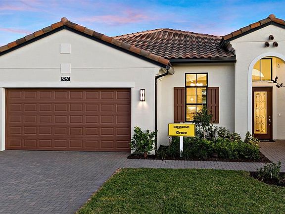 Discover Cresswind Palm Beach, a premier 55+ community in Westlake, FL. Enjoy new, energy-efficient homes, an Adventure Park, dog park, and daily conveniences. Minutes from beaches, golf, arts, shopping, and dining, this vibrant neighborhood offers low-maintenance living and plenty of social, wellness, and recreational opportunities for active adults. Grace floorplan: modern home with rear island kitchen, open dining/great room, private owner's suite with tray ceiling, dual vanities, and convenient laundry access. Flexible options include bonus room, extra owner’s suite, fitness/study, third bedroom, rear extension, attic storage, and garage expansion.