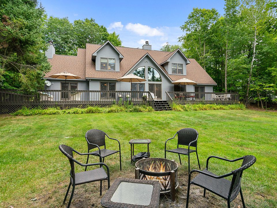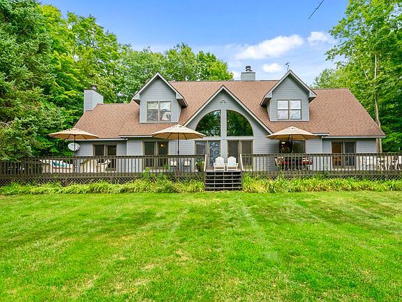 This beautiful home, located on Burt Lake's northeastern shore, is perfect for someone looking for a tranquil setting. The 3.76 acre parcel with 135' of water frontage is a rare find in itself, but to include a 4 bedroom furnished, custom home makes this a special property. The large living room spans the center of the home, opening to the dining and kitchen areas while the adjacent family room is perfect for television or reading. The waterside primary suite, with a large bathroom, walk-in closet, and fireplace, even has a private office when you work from home. The 3 bedrooms upstairs provide ample room for your team while the attached garage and additional pole building are perfect for all your storage needs. Located in an area of beautiful homes, this may be the home for you.