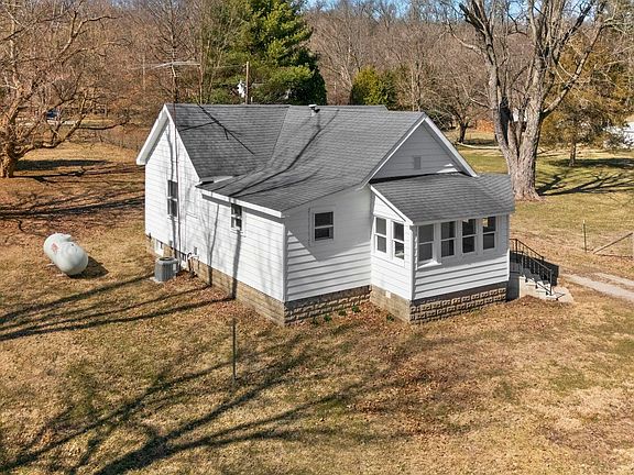 Welcome to this immaculately well maintained home on nearly half an acre of peacefulness in the middle of Covered Bridge Country. This charming open concept 2BR 1BA bungalow has original hardwood flooring in the family room and kitchen, new flooring throughout and many updates. Perfectly situated in the country, but just 5 miles south of the town square, this property is convenient yet hidden. Sit out on the wrap around enclosed front porch, drink your coffee or tea, watch the sunrise, and enjoy the solitude of nature. Plenty of wildlife to see including deer, turkey, eagles and birds galore. Plenty of room for a large garden, chickens, or other animals. This home has a clean basement to go to in case there is bad weather. If you're just starting out or ready to downsize, this property is for you! Come check it out before it's gone.