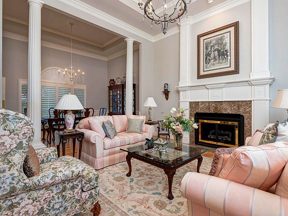 What a fantastic location in a gated community and lots of space and character for this 4 bedroom 3 ½ bath, 3 car garage walk-out basement home. Beautiful entry with towering ceilings leading to the spacious great room with hardwood floors, crown moldings, and gas log fireplace. Enjoy the large family sized super sharp kitchen with lots of cabinetry, center island and beautiful granite counter tops, farm house sink, induction cook top, convection/conventional oven, all open to hearth room with high ceilings, spacious formal dining, and office. Many upgrades in the last few years including both HVAC systems, roof, windows, French doors on main level and basement, James Décor plantation shutters in living room & dining room. Basement boast extra living areas, wet bar, huge storage/hobby rooms, & John Deere room. Wonderful outdoor living from the large composite deck with gorgeous views of towering trees and fenced back yard, flagstone patio, and beautiful landscaping. Hurry you won't want to miss this beautiful home with high end finishes in great neighborhood with many amenities.