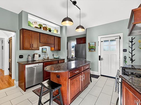 Come say happy birthday to this beautiful charmer in the sought after Princeton Heights neighborhood! This FOUR bedroom, three FULL bath home has all the old world charm with beautiful original hardwood throughout, original two panel wood doors with glass knobs, laundry shoots and gorgeous trim. The kitchen has been modernized with stainless appliances, a vented hood, center island, and a butler pantry. The main floor living room with 9 foot ceilings is large and open, with a cute reading nook surrounded by windows and a decorative fireplace. Primary suite is on upper level, but there is a bedroom/full bath on main floor. Three bedrooms and two HUGE baths total on upper level. Check out the feet on the claw foot tub! So much to love outside also as home has a covered front porch , a nice paver stone patio leading to the level yard. This is a corner lot and the yard is twice the size of the surrounding homes! Basement has a toilet rough-in already in place and the ceiling mounted movie projector can stay.