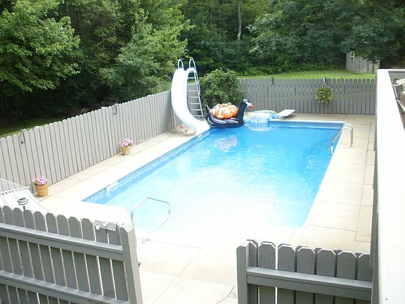 Lovely custom built one owner home in very nice condition! Beautiful park like back yard with lots of privacy, large deck and in-ground pool. Very large family room (26 x28) with top of the line pellet stove. 20 x 26 heated garage. Kitchen/Dining 12 x21 1/2, Living Room 15 x16, Bedrooms 12 x14, 12 x 9, 11 x 9, 12 x 13, Roof 3 years old, New hardwood floors in living room, hall and one bedroom. 12 x 16 shed! Home situated deep off road on .86 acre lot. Exceptionally well kept property inside and out!