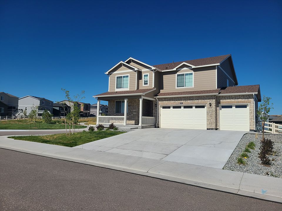 Wonderful corner lot property in Crystal Valley Ranch! Over 2700 sqft finished plus unfinished basement for extra storage or flex space. 5 bed/3 bath total. Built in 2022, the Upper Level Features 4 bedrooms + Loft, master suite (20'x16') with 5 piece bathroom and great walk-in closet (10'x12'), and additional full bathroom off hallway. Main level Features Great Kitchen with Stainless appliances, massive pantry, gas range, dining room, family room with electric fireplace. Washer/dryer included! Trash and Recycling included! Access to clubhouse and pool included! 3 car garage with EV (Tesla) Charger! Exterior features great deck off main level for outdoor enjoyment. New exterior landscape (grass/rock - not pictured at time of photos). Close to restaurants/bars/shopping. $3900 Security, Deposit Dogs ok - $350 One Time Pet Fee, Available 8/1/25. Tenant responsible electric/gas. Owner pays HOA, trash, water. DO NOT BOTHER CURRENT TENANTS OR APPROACH HOME WITHOUT AGENT REPRESENTATION. CALL/TEXT JUSTIN 72O-933-17O3 TO SCHEDULE A SHOWING.