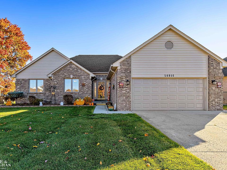The perfect Ranch! This beautifully updated 3 Bedroom, 2.5 Bath home exudes warmth and style. The Great Room welcomes you with a cozy Fireplace and vaulted ceiling. The newly renovated Kitchen features wood cabinets with soft close doors and pull-out lower cabinets for easy storage, granite counters, stone backsplash and new appliances. All Bathrooms have been renovated with granite and new Kohler faucets/fixtures. The Primary Bedroom Suite offers a private, renovated walk-in shower, walk-in closet and a generously sized Bedroom. Enjoy the convenience of a First Floor Laundry off the attached Garage. This home has been updated throughout: Kitchen, Baths, carpet, paint, windows, window treatments, patio doors and Basement drywall. The whole house has been meticulously updated and maintained including the Roof, Furnace, Sump Pump, Water Heater & more! Residents enjoy Aquatic Center, Recreation Center and Parks w/Dog Park, Basketball, Tennis/Pickleball and walking trail.