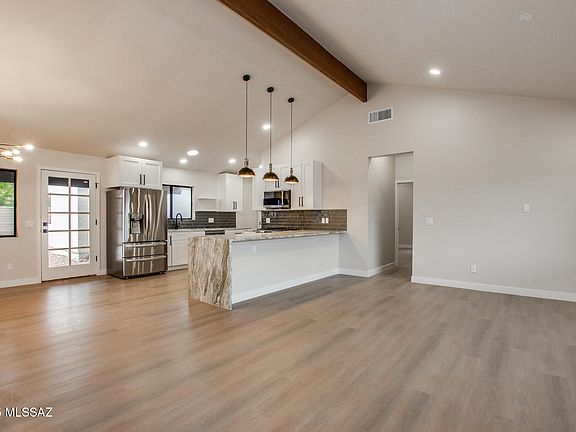 Beautifully remodeled 4BR/2BA ranch-style home in a prime central location near TMC, UA, shops, dining & parks. Features vaulted ceilings with wood beams, abundant natural light, two new ACs, and a spacious open floor plan perfect for entertaining. Ensuite primary with spa-like bathroom. Oversized 700 SF detached garage with private entrance--ideal for guest house or studio. No HOA. Great as a primary home, long-term rental, or Airbnb. Quiet cul-de-sac adds privacy and charm.