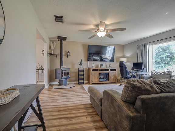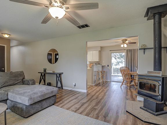 Welcome to your dream home just 10 minutes from Lake Shasta! This charming 3 bedroom, 2 bath home is nestled at the end of a quiet court, offering serenity and privacy. As you enter, you'll be welcomed by a spacious living space with new flooring and a cozy wood stove, perfect for relaxing evenings The property showcases a generous sized yard with a seasonal creek, providing a picturesque backdrop for gatherings on the patio. This home has RV parking, along with a new front sprinkler system to keep your yard lush and green. There are lemon, lime, and pomegranate trees, too! Additional features include updated bathrooms with new lighting, vanity, and flooring, along with a new roof and exterior paint in 2019. Don't miss the chance to make this beautiful home yours