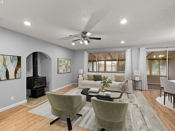 Welcome to your next chapter! This charming, updated ranch style home is the ideal home for many buyers, blending classic style with modern amenities you'll love. Step inside to a sun-filled, updated kitchen with all newer appliances, perfect for creating home-cooked meals. On a cool evening, cozy up to the wood-burning stove in the freshly painted living room, or soak in the sunshine year-round in the spacious, 240 sqft sunroom with tile floors and utility sink.The large, fenced backyard is a sweet haven that backs up to Bluebell Park. It's divided into two zones—a sunny open space for pets, play or more garden space, and a smaller section with a covered patio and productive apricot tree, perfect for a quiet afternoon. The yard also offers space for RV/boat parking, and for all your projects and storage needs, you'll find a massive 12'x20' steel-framed outbuilding, plus an attached oversized two-car garage with a newer washer and dryer.Located near bus and bike paths, this home offers easy access to East Springfield's shopping and restaurants, making it the perfect blend of suburban comfort and city convenience. This is more than just a house; it's the foundation for your new life in Springfield.