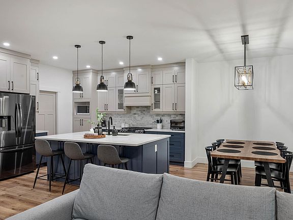 CUSTOM BUILT HOME WITH 2 BED LEGAL SUITE ACROSS FROM A POND! Step inside to a spacious entryway and elegant iron spindle staircase. Off the foyer: a stylish 2 pc bath with quartz counters, a large mudroom, access to your double attached garage, and a walkthrough pantry. The chef-inspired kitchen boasts black stainless appliances, gas range, floor-to-ceiling two-tone cabinets, and a large quartz island. The living room features a cozy stone fireplace wall—perfect for long winter nights. A main floor den adds flexible space for a home office or playroom. Upstairs offers a bright bonus room, upstairs laundry, two bedrooms, a 4 pc bath, and a stunning primary retreat with a luxurious 5 pc ensuite. The LEGAL BASEMENT SUITE has its own entrance and laundry, with two generous bedrooms, a full kitchen with quartz counters and stainless steel appliances, a 4 pc bath - A perfect mortgage helper! Quick access to all amenities, parks, paths and green space!