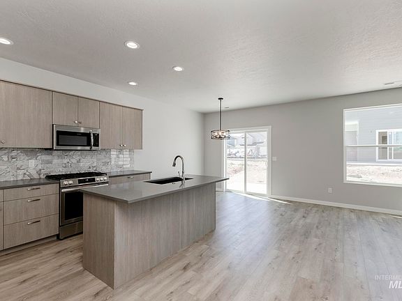 Fall in Love with Low Rates! Promotional rate as low as 2.99%. Feel enriched in your brand new home located in Meridian, Idaho! The Owyhee 1597 floorplan is a two-story home that effortlessly blends functionality with modern design. Downstairs, you'll discover a practical half bathroom, offering convenience for both residents and guests. The kitchen boasts upgraded finishes, including stainless steel appliances, a gas range, and stylish solid surface countertops. Large windows fill the space with natural light, enhancing the inviting atmosphere. Head upstairs to find an additional full bathroom serving the two generously-sized bedrooms, streamlining morning routines. The primary suite is a standout feature, complete with a walk-in closet for your wardrobe and storage needs. With its well-planned layout, this home offers both style and practicality. Photos are similar. All selections are subject to change without notice, please call to verify.