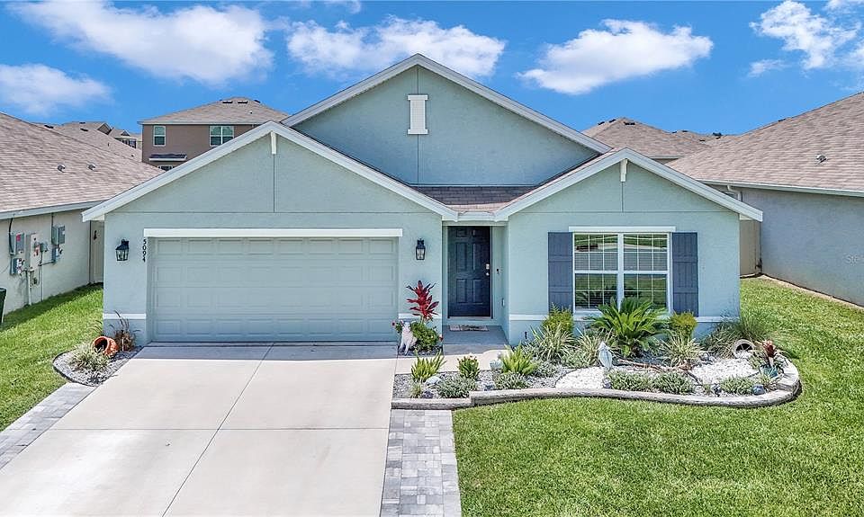 FULLY LOADED... UNBELIEVABLE UPGRADES !!! This charming MINT CONDITION 2022 one-story 4-bedroom, 2-bathroom concrete block home is located in the highly desirable GATED community of GREYSTONE HILLS in prime SW Ocala. This 1,827 square foot home boasts an expansive open concept floor plan with elegant tile flooring throughout the ENTIRE home. There's a spacious and well-appointed kitchen with white cabinets, plenty of storage, sizable corner pantry and stainless steel appliances along with a magnificent granite island with seating that overlooks the large central living and dining areas. These spaces extend through sliding doors to the covered lanai, where you can relax or dine outdoors while protected from the sun, and enjoy the view of the fully fenced-in backyard, perfect for pets. At the front of the house you'll find two generous bedrooms sharing a full bath with a tub shower combo. Across the hall, a convenient laundry room is located off the two-car garage along with a versatile fourth bedroom that can also be utilized as an office or den. The split bedroom layout provides the roomy master suite at the rear of the home with privacy, while the luxurious master bathroom offers a welcome retreat with dual sinks, multiple large closets and an enclosed toilet room. With a PRACTICALLY NEW ROOF and AC (both original in 2022), you can enjoy modern comfort and reliability in a prime location conveniently located minutes away from some of the Ocala’s finest schools, shopping, and dining, while in close proximity to the area’s major transportation hubs at Highway 200 (SW College Road) and Interstate 75 (I-75). EXTENSIVE UPGRADES INCLUDE: beautiful porcelain tile throughout the entire home (NO CARPET), a FULLY FENCED-IN BACKYARD with vinyl privacy fencing, IRRIGATION (SPRINKLERS) ADDED to the backyard, impeccable CUSTOM LANDSCAPING and HARDSCAPING including seasonal flowers and shrubs, ENHANCED planting beds with mason-installed STONE EDGING and decorative WHITE GRANITE stones replacing the original mulch, and a significantly WIDER DRIVEWAY extended with PAVERS. KITCHEN UPGRADES include beautiful GRANITE surfaces for the kitchen island and countertops, a tile BACKSPLASH and an oversized FARMHOUSE SINK. The covered lanai and front porch feature UPGRADED EPOXY FLOORS. Wood flooring and a light was ADDED to the attic above the garage to allow for ADDITIONAL STORAGE. This home has been METICULOUSLY maintained by the original owners and was just FRESHLY PAINTED. Cabinets were ADDED to the laundry room and the washer dryer conveys with the house. Homeowners at Greystone Hills enjoy exclusive key fob access to a magnificent COMMUNITY POOL with covered cabana, outdoor kitchen and guest parking. HOA fees are EXTREMELY REASONABLE for a GATED COMMUNITY with a POOL ($300 every three months). This EXCEPTIONAL and IMPECCABLY MAINTAINED home offers comfort, convenience, and a welcoming atmosphere in a wonderful community with AMAZING UPGRADES throughout!
