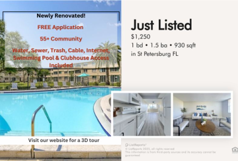 Beautiful 1 bed 1.5 bath is available for rent in St. Petersburg, FL.