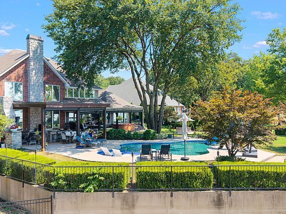 Incredible main lake views! A gorgeous 2024 renovation. A backyard that feels like your own resort. And yes, there's even a hidden flex room you didn't know you needed! This home has it all: 5 bedrooms, 4.5 bathrooms, an office, formal dining, an upstairs loft, and a private dock! Four bedrooms feature ensuite baths, giving everyone their own space. The kitchen was designed with luxury in mind, featuring quartz countertops, custom soft-close cabinetry, a walk-in pantry, stainless appliances, a large island with gas cooktop, bar seating for four, and gorgeous backlit backsplash lighting. Just off the kitchen is a cozy sitting area, a half bath for guests, and a concrete safe room for peace of mind. Fireplaces inside the dining and living rooms add warmth and character throughout. The main-level primary suite offers lake views and an ensuite with dual vanities, a soaking tub, a dual custom shower with two shower heads, and two spacious walk-in closets. Upstairs, one bedroom includes a fully renovated ensuite with a custom shower. Another has a private ensuite with a shower/tub combo. A third connects to a bathroom with a tub/shower combo with hallway access, perfect for sharing with the fourth bedroom down the hall. Two upstairs bedrooms also have hidden access to a finished flex space, ideal for storage, a playroom, or a hangout spot. Floor-to-ceiling windows bring in natural light, custom Italian tile flows throughout the downstairs, and upscale fixtures complete the home. The garage is finished with epoxy floors, built-in cabinets, and an air-conditioned workshop. Step outside and discover a major highlight of this incredible home. A pool with a slide and tanning ledge, a hot tub, and a full outdoor stone kitchen with bar, sink, refrigerator, EVO griddle, gas cooktop, an outdoor fireplace, and more that make it the ultimate place to entertain and make memories. The covered deck is set up for year-round enjoyment with a TV, plenty of seating, and electric shades. Curb appeal is unmatched, and the amenities of Patricia Island take it even further: an 18-hole championship golf course, country club with two restaurants, pickleball courts, gym, pool, playground, and more.