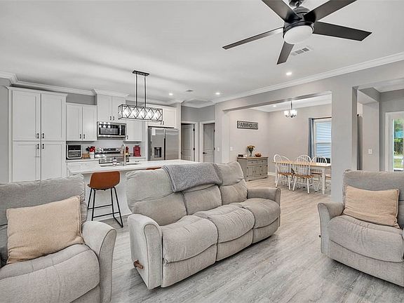 This is a BEAUTIFUL 3 bedroom, 2 bath home with OPEN concept and split floor plan, offering granite counter tops, LVP flooring, trayed ceilings, crown molding and a 2 car garage. The primary bath has a jacuzzi tub, double vanities, separate shower and walk in closet. The large back yard is fenced for privacy and includes a covered back patio and irrigation. Located not far from all amenities, public boat ramps, boating and fishing! Only about 30-40 minutes from St Simons Island and the beach! Call to set up your showing today!