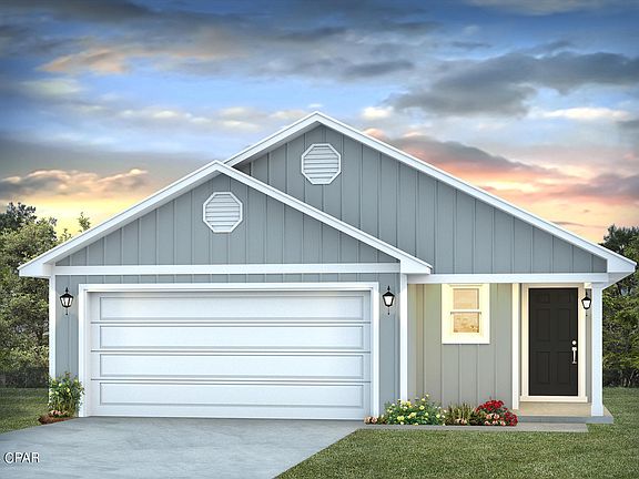 The Jemison is a 3-bedroom, 2-bathroom home that has 1637 square feet and has an open floor plan that makes you feel right at home. As you walk up to the home, you will notice the covered front porch next to the two-car garage. This space is perfect for a small patio furniture set to sit and enjoy your evenings while watching the sunsets in Panama City.
