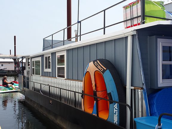 All new, spacious, one-of-a-kind floating home with a beautiful view. All trim is done in beetle wood. stainless fridge and microwave. Tile counter tops. All shelves and stands are hand made. Experience this unique lifestyle with gated moorage with workout room, reading room, wood & metal shop, add'l laundry/shower facilities.