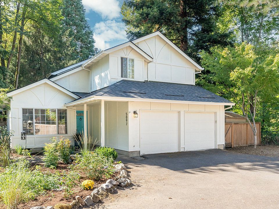 Tucked down a private drive in a desirable Lake Oswego neighborhood, this home is immersed in tranquil nature as it borders a green space along one side that provides additional privacy with lush green surroundings.The open living room to dining room is light and bright with vaulted ceilings. The large kitchen with a pantry and stainless appliances overlooks the secondary living space that features a cozy fireplace and flexible bonus space with sliding glass doors that connect to the forested backyard living area. The primary suite and 3 additional bedrooms are located on the upper floor with a separate full bathroom. The large double car garage has additional storage space.The large lot provides endless possibilities for outdoor entertainment, gardening, or simply enjoying the beauty of the surrounding green space. Ideally located just minutes to local LO restaurants or Bridgeport Village shopping & dining, as well as quick access to I-5 for an easy commute. Excellent Lake Oswego schools and the property has 3 lake easements.