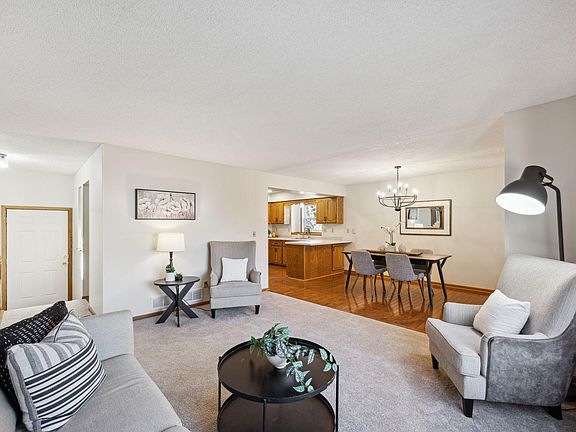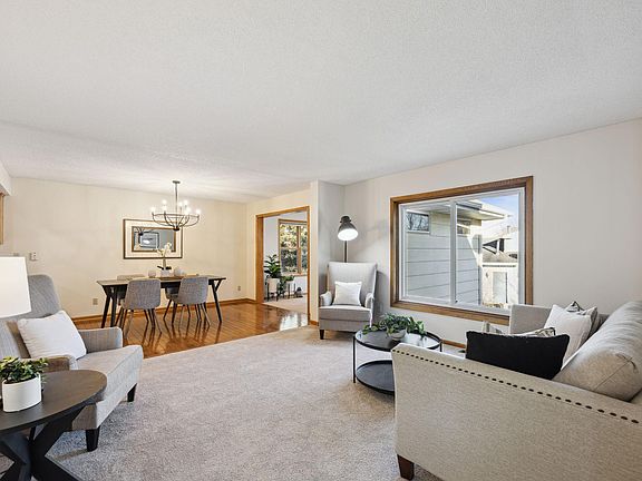 Bright and welcoming home with great location right across the street from 4 Seasons Park. Spacious living room adjoin a large dining room and great kitchen! New stainless steel appliances. Cozy sunroom with corner fireplace. 2 main floor bedrooms and a full bath with a pass through to the primary bedroom. Fully finished walk out lower level with additional bedroom, full bath, and plenty of storage. Large 2 car garage and additional storage in backyard shed.