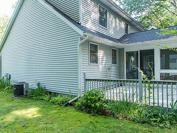 Wooded setting for this charming Cape Cod on cul-de-sac in Mattawan. The spacious kitchen includes large pantry and flows into the dining area, where slider opens to a bright sunporch-perfect for enjoying wooded views year-around. Two additional decks offer great outdoor living spaces. Main floor primary suite with double closets. Hardwood floors in main living area. Convenient main floor laundry. Lower level offers office, and two rec room areas. Roof was replaced in 2022.