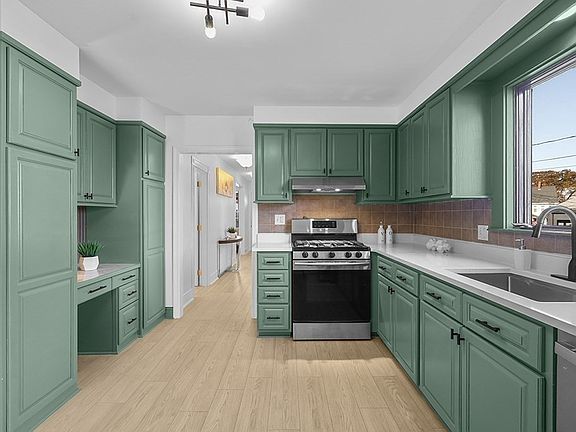 Laundry area in basementNewly painted kitchen cabinetsCorner lotOwn drivewayPlenty of green spaceQuartz countertopsStainless steel appliances