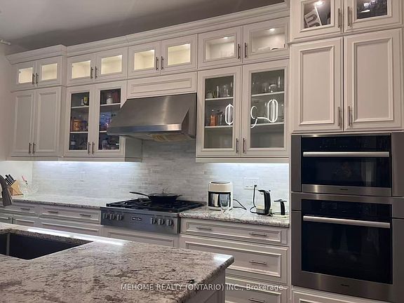 in custom upgrades. Impressive 3700+ square feet above ground. Situated in a tranquil safe friendly neighborhood. Features breathtaking ravine view w/sunfilled finished walkout basement. Amazing 12 ft ceiling on main&9 ft on 2nd. 4 Bedrooms and a huge Family room on 2nd floor, 5th Br ensuite in basement. 6inch Hardwood floor through out. Open Concept Kitchen W/Granite counter, Granite center island, Upgraded Cabinets, Under Cabinets Light, a full set of top-line Miele appliances! Great Room With Gas Fireplace, Waffle Ceiling. Pot Light&Smooth Ceiling through out. Steps To Trail And Forest. Close To Community Center, Go train Station, Schools, Parks, Shopping Plaza, 404.