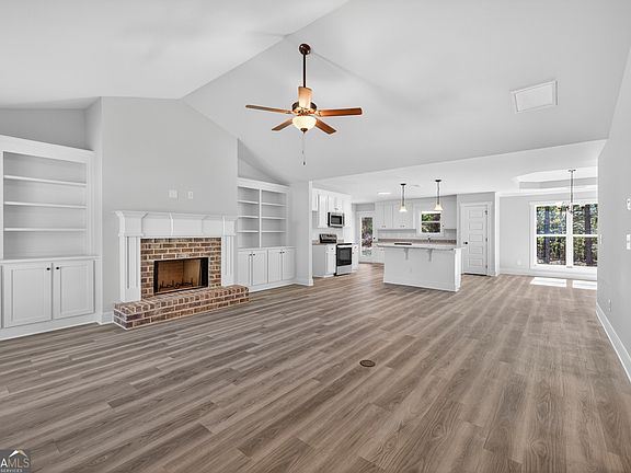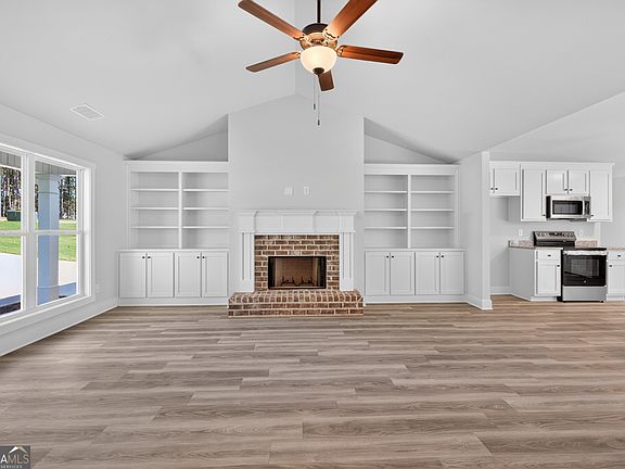 The Sarah floorplan - NEW CONSTRUCTION on large, wooded lots! Large Covered Back Porch! 4BR/3.0 BA is an Open Concept plan with Wood-Burning Fireplace in the Family room and Built-in shelving/cabinets on each side of fireplace. Granite countertops throughout. LVP flooring throughout. Kitchen has a Work Island and Pantry. Separate Dining area. Spacious Master Suite w/ Soaking Tub, Separate Shower & Separate His & Her Vanities! Easy access to Hwy 78 and Hwy 316 for commuters. 2-10 Builder Warranty. Builder's Incentive $4000 in closing costs with preferred lender.