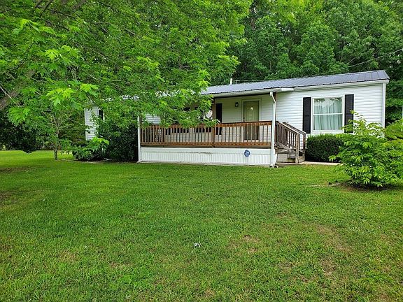 1997 (3 bed/ 2 bath) double-wide on a concrete block foundation with covered front porch, covered back deck, and 2 car detached garage. Nice level lot that backs up to National Forest Service. Only about mile to Turkey Foot Recreational Area and trails. Home features spacious living room/dining area, split bedroom floor plan, master suite, bonus room, kitchen bar, and utility room. Garage has electric, water, small bathroom, wood stove (needs new glass in door), storage/office room and attic storage. Estate Sale---Inspections welcomed but Sold As Is.